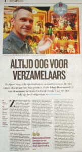 Maria (72) Hesemans nemen af en toe een dag vrij, maar thuiszitten past ze niet. „Het is hier vaak een gezellige boel,” reageert Maria. Vanwege toenemende concurrentie is het grootste deel van de huishoudelijke artikelen uit de schappen verdwenen. Die ruimte in de winkel is ingenomen door liet groeiende assortiment speelgoed en interieurdecoraties. Wanden vol doosjes niet modelauto’s, van klein tot groot. Vitrinekasten vol poppenhuisineubels. Porselein, aardewerk, glaswerk en tin. Pluche beren van Steiff, de bijna levensechte poppen van Annette Himstedt, mozaïeken beeldjes van Barcino Designs; Hesemans biedt een bonte verzameling verzamelingen. Echt speelgoed kun je de poppen, beren of modelauto’s die soms honderden euro’s per stuk kosten bijna niet meer noemen…Kwaliteit vind ik belangrijk, maar klanten moeten hier ook binnen kunnen lopen voor een kleinigheidje van hooguit 10 euro. Daar let ik wel op.” Omdat Johan tussen de producten is opgegroeid, kent hij alle merken en weet hij precies wanneer een fabrikant niet een nieuwe serie op de markt komt. De ene klant zoekt iets moois voor op de kast, een ander vindt bij Hesemans dat ene onder deel van zijn collectie waarnaar hij al zo lang zoekt. Johan kent zijn klanten en hun wensen. Wanneer hij een beurs bezoekt, kijkt hij altijd uit naar voorwerpen waarmee hij een vaste klant kan verblijden. „Als ik iets tegenkom waarvan ik denk dat het bij iemand past, neem ik het mee of ik maak er een foto van. Dan kan ik het later nabestellen.” Om de zoveel tijd laat hij producten in gelimiteerde aantallen maken. Zoals een stoffen pimpelmees dat hij heeft laten maken ter ere van het 145-jarig bestaan van de winkel afgelopen oktober. „Bijzonder voor de verzamelaar en leuk voor onszelf.”