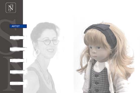 Sylvia Natterer was born in 1949, she is swiss. As a child Sylvia made her own dolls and doll houses to play with, and as a child and young adult she won prizes for drawing and painting. A logical career choice was to become a teacher, she studied for a couple of years and afterwards she taught creative subjects. In this period she experimented, she was for the first time making dolls with papier-mâché. Also she worked in theatre performances with her dolls. After the birth of her daughter Sylvia stopped teaching. But she did remain creatively active, since then she has been especially busy with marionettes an dolls. In 1975 Sylvia and her family moved to München and here she joined the puppet theatre for adults “Kleines spiel”. In this year she also made her first doll from wood composition, for her daughter after that she made many more, different every time. In 1976 her first son is born and in 1978 her second son is born. In the years that follow Sylvia is part of various different presentations and wins a couple of prizes. Throughout the years she becomes members of different artists clubs. Besides that she directs herself to business and makes doll making her profession; one of her designs for a doll was added to a collection by Zapf at the end of the 80s, it was called “Colette”. In 1982 she started with the experimentation of casts for porcelain dolls. The models for her wooden dolls are a big help here. As an artist Sylvia keeps developing and after bandits, thieves and devils she has landed at the making of children and babies. She wants the doll faces to be friendly, soft, honest and innocent just like a child. But dolls need to remain dolls she thinks, her favorite thing is to let the child or collector use their fantasy. Next to the porcelain dolls Sylvia Natterer also got the firm Götz to make her dolls in vinyl under her own name. she herself sees the porcelain dolls as practice to keep making better playing dolls. Because an industrial design has even higher demands than a design for a porcelain doll. Her latest development is that she is making dolls from paper.