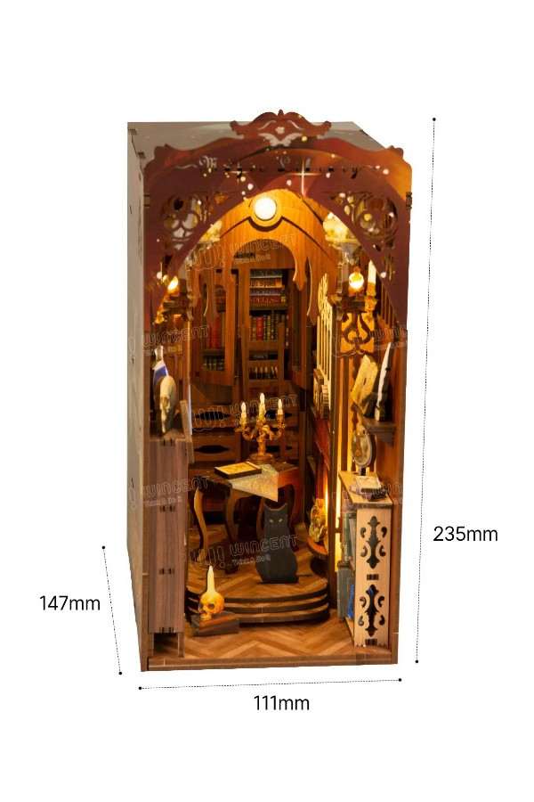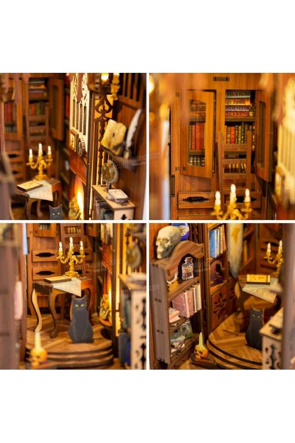 Onthul de charme van de betoverende magische bibliotheek met deze prachtige 3D houten puzzel. Ontworpen met originele UV-print is het een gezellig tafereel, compleet met prachtige handgemaakte accessoires, Boekenplanken, een nieuwsgierige kat, een gloeiende open haard en een retro kroonluchter. Het lsensorlicht voegt een interactief tintje toe en verlicht de magische ruimte.