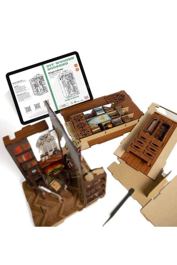 Met een moeilijkheidsgraad van 4/5 biedt deze puzzel een uitdaging voor kinderen vanaf 14 jaar en duurt het ongeveer 4-8 uur om te voltooien. De kit bevat laser gesneden houten platen die gemakkelijk met lijm kunnen worden verbonden, waardoor de montage zowel leuk als bevredigend is. Eenmaal gemonteerd heeft het model een afmeting van 111 x 147 x 235 mm, wat een boeiende en speelse toets aan uw boekenplank toevoegt.