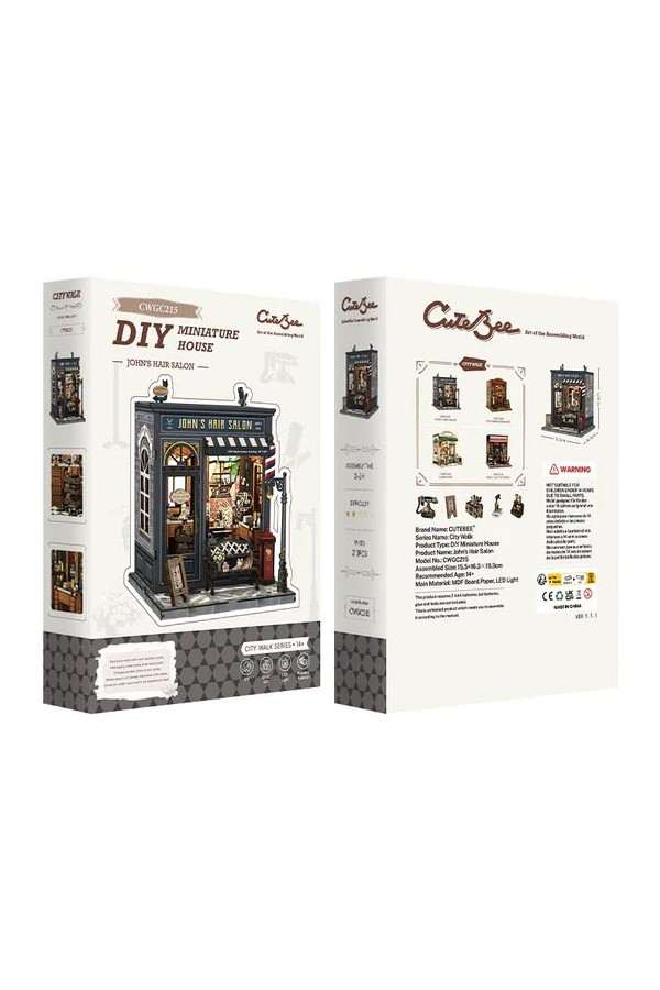 Stap binnen in een charmante, sfeervolle miniatuurwereld met de Cutebee 3D DIY Huisje – John’s Hair Salon (CWGC215). Dit knusse kapsalonhuisje vangt de gezellige sfeer van een buurtzaak, vol kleine details die het leven in een levendige winkel tot leven brengen.