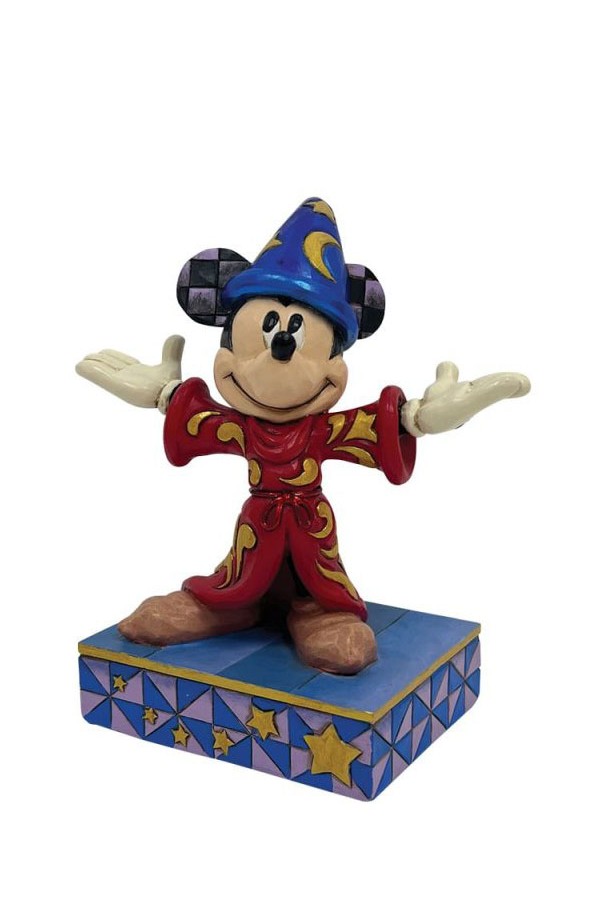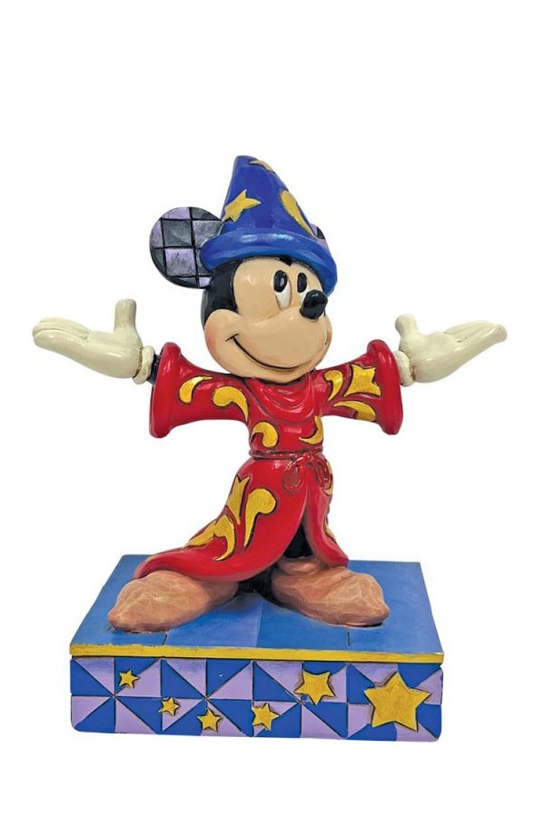 Celebrating the 85th anniversary of Fantasia in 2025, this Jim Shore Mickey Mouse is striking in red robes adorned with real gold cord and intricate rosemaling. With his sorcerer’s hat, Mickey embodies the magic and wonder of the beloved classic.