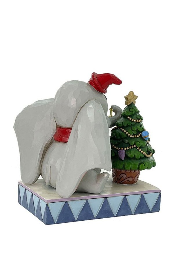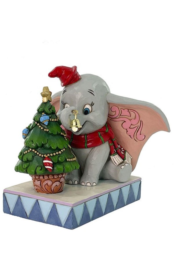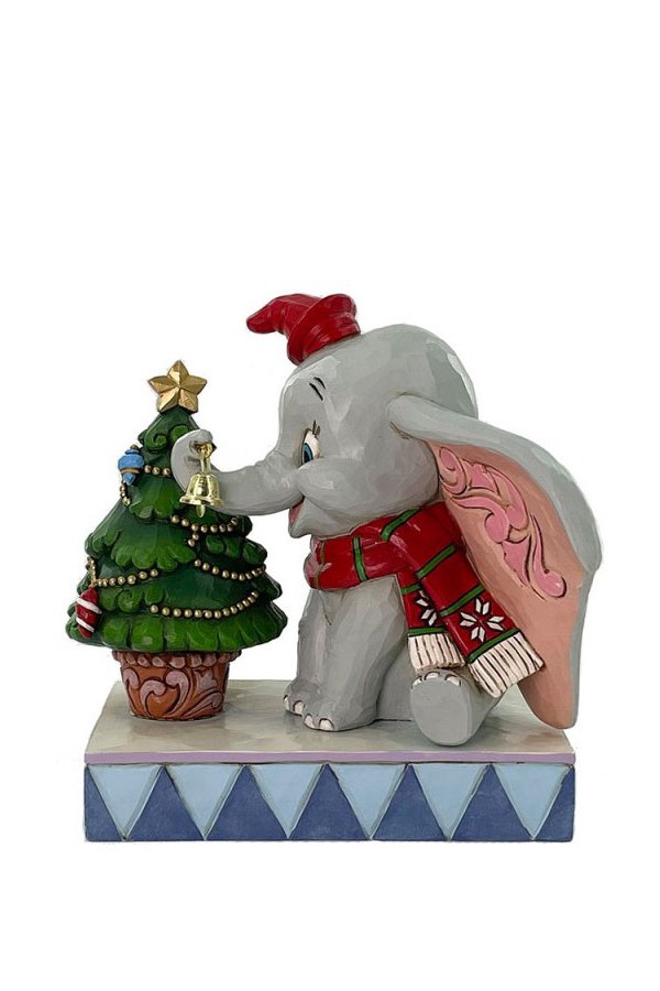 In this heartwarming Jim Shore scene, Dumbo is festively dressed in a red coat and hat as he joyfully decorates a miniature Christmas tree with a real working bell in his trunk. Capture the spirit of the season with Dumbo’s playful spirit.