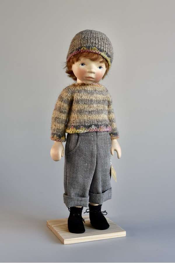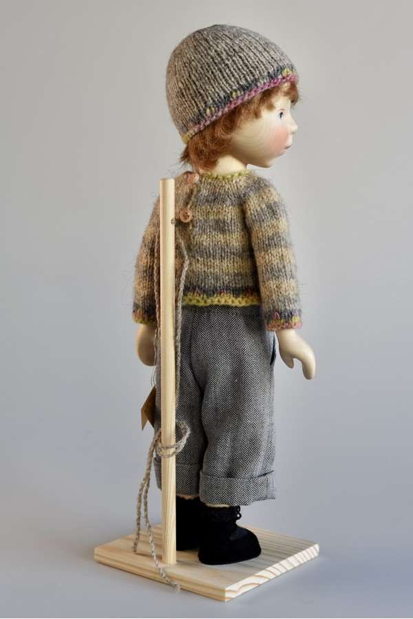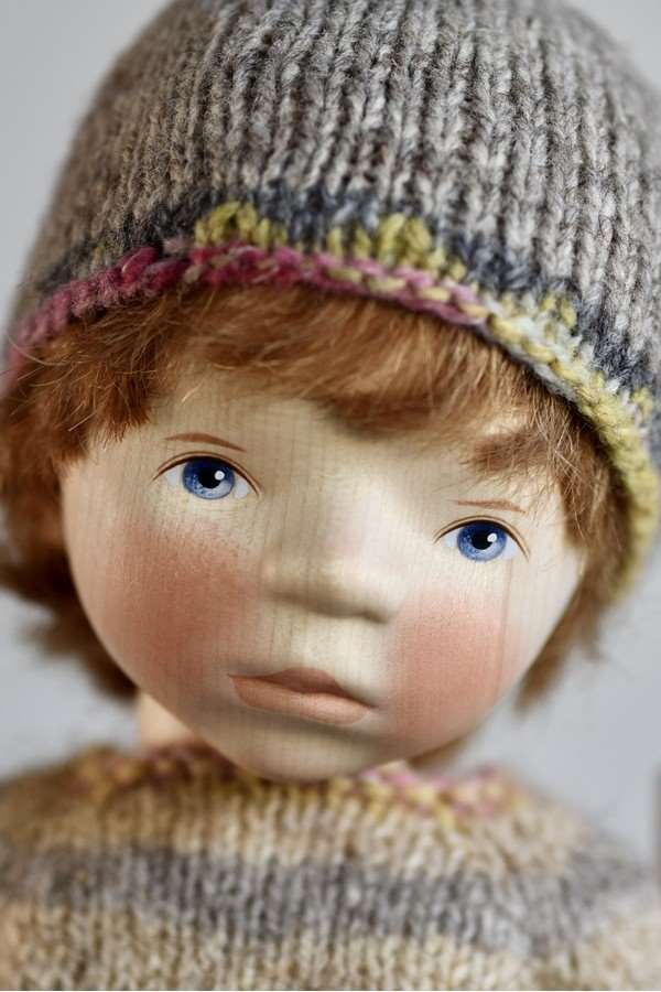 The entire doll is made out of wood. Her arms, legs and head are moveable. With real hair.