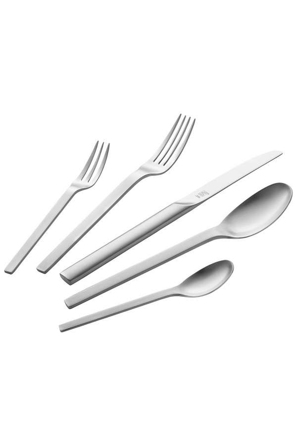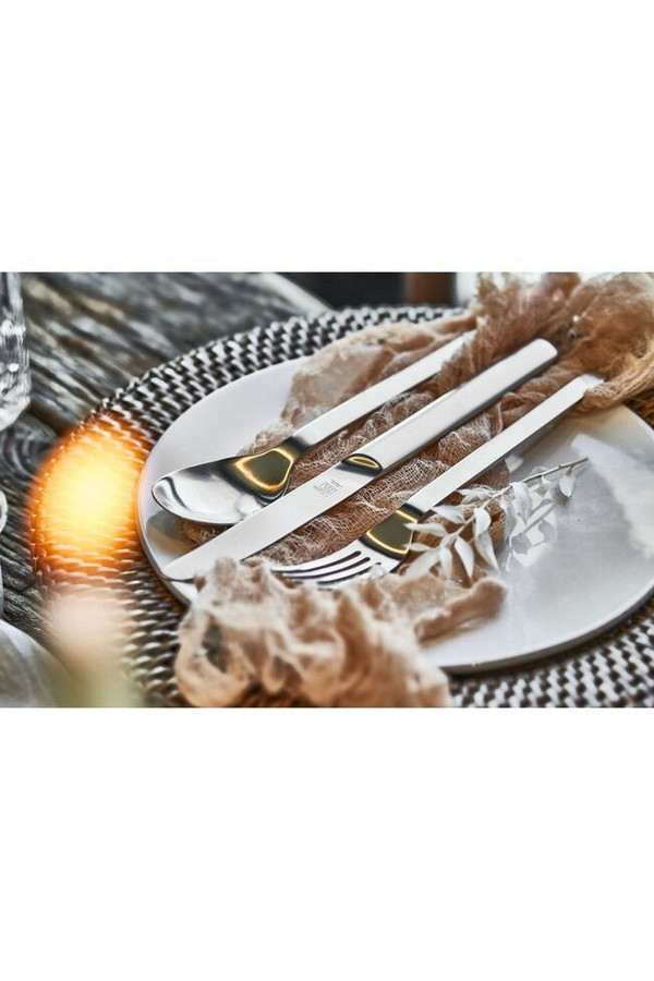 The Minimal cutlery lives up to its name: no frills, just a straightforward design. All 68 pieces have a satin finish that emphasizes the modern look of this designer cutlery. This cutlery is crafted from 18/10 stainless steel. Only the monobloc knife is made from a single piece of high-quality blade steel and then tempered. All surfaces of the table set are precision finished, and the edges are carefully rounded. This cutlery is corrosion-resistant and dishwasher-safe. Every time you use this cutlery set, you’ll be amazed by its quality. The knives, forks, and spoons, all with smooth handles, are comfortable to hold.