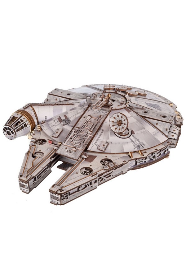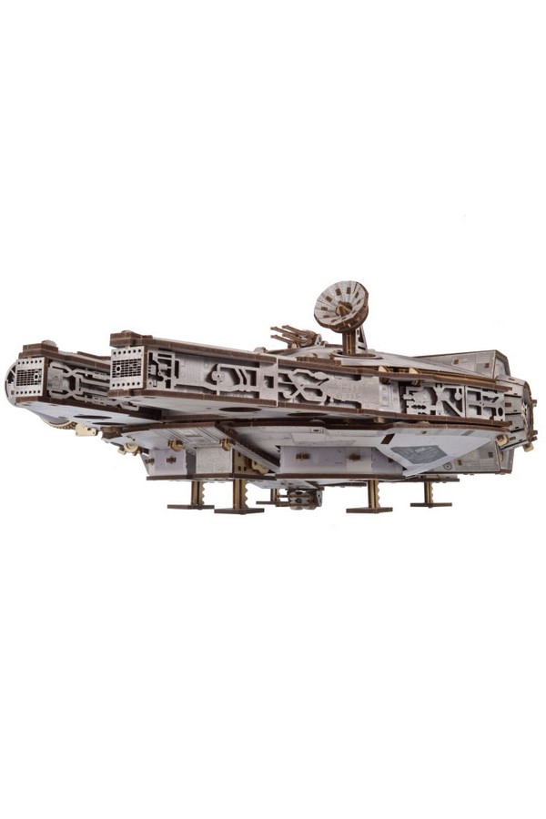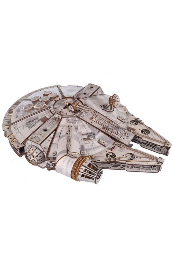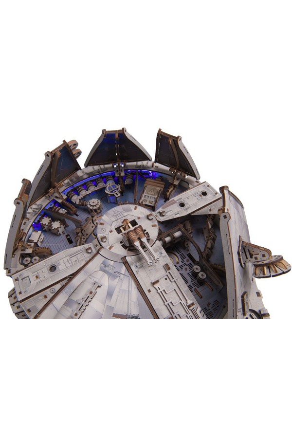 De Millennium Falcon heeft zeer gedetailleerde, gekleurde elementen aan de buiten- en binnenkant die het uiterlijk van het schip uit de Star Wars-films nabootsen, evenals batterij-aangedreven blauwe LED-lampen die de gloed van de hyperdrive-motor simuleren. Beweegbare onderdelen zijn onder andere de instaphelling, laadruimtedeur, landingsgestel, geschutskoepels, roterende 360°-antenne en een uitschuifbaar dak dat het indrukwekkend gedetailleerde interieur onthult. Elementen van hoge dichtheid vezelplaat en karton zorgen voor extra stevigheid en detail. Bouw en bezit een stukje filmgeschiedenis met dit absolute pronkstuk: het 3D-model van de Millennium Falcon.