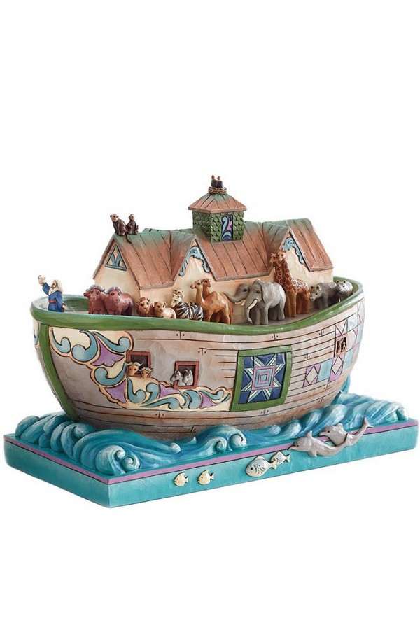 “Vaar uit met een onwankelbaar geloof” Dit indrukwekkende, met de hand beschilderde en gedetailleerd gebeeldhouwde ontwerp van Jim Shore is een eerbetoon aan het geliefde bijbelverhaal van Noach en zijn ark. Met een paar van elke diersoort begonnen Noach en zijn familie aan een geloofsvolle reis terwijl de volkeren van de aarde door een zondvloed werden getroffen. Ontworpen door Jim Shore voor Heartwood Creek. Met de hand vervaardigd uit hoogwaardig gegoten steen, vervolgens met de hand beschilderd en verpakt in een geschenkdoos met merklogo.